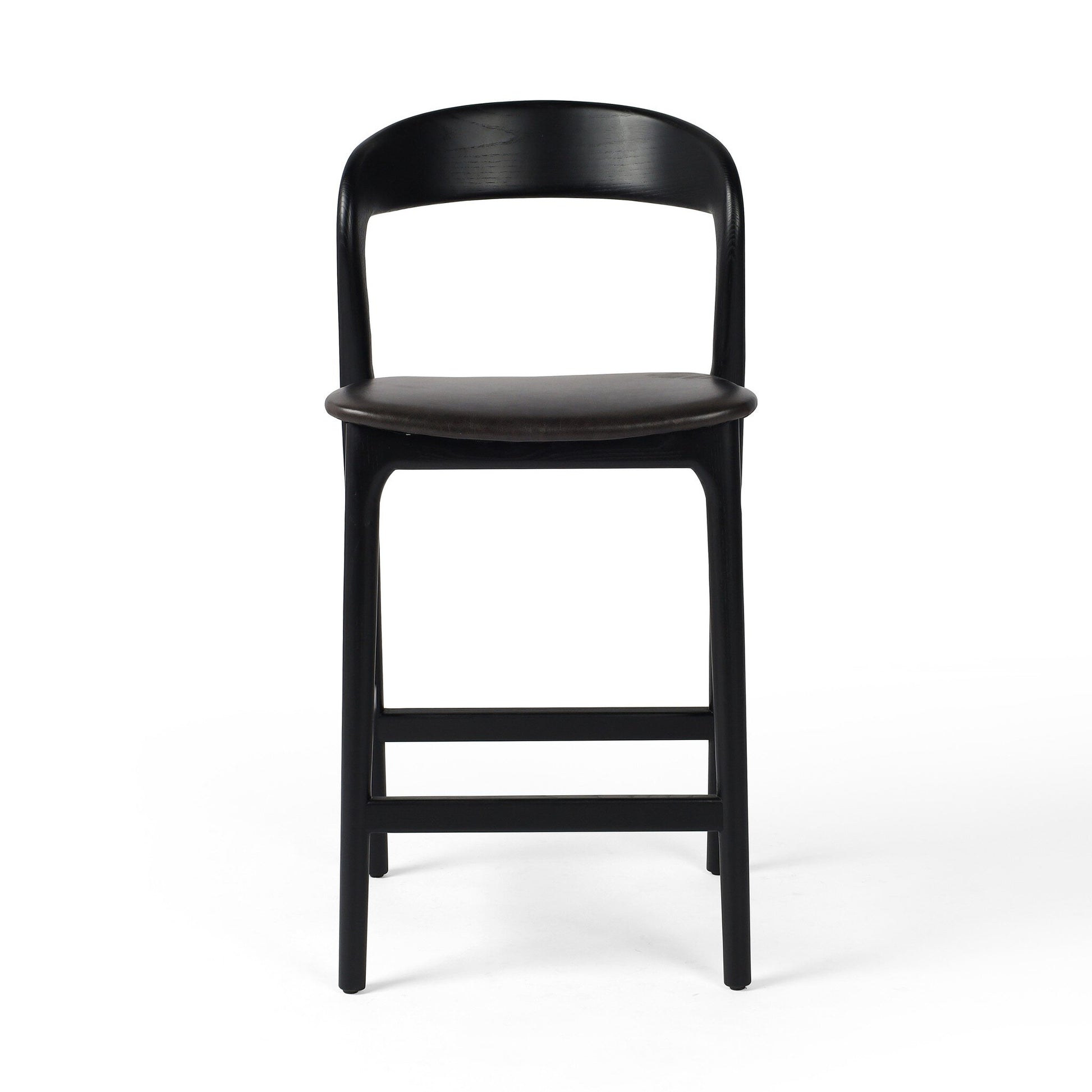 Modern monochrome, perfectly sized for the counter or bar. Inspired by simple Scandinavian styling, solid ash forms a shapely open frame for top-grain leather seating.