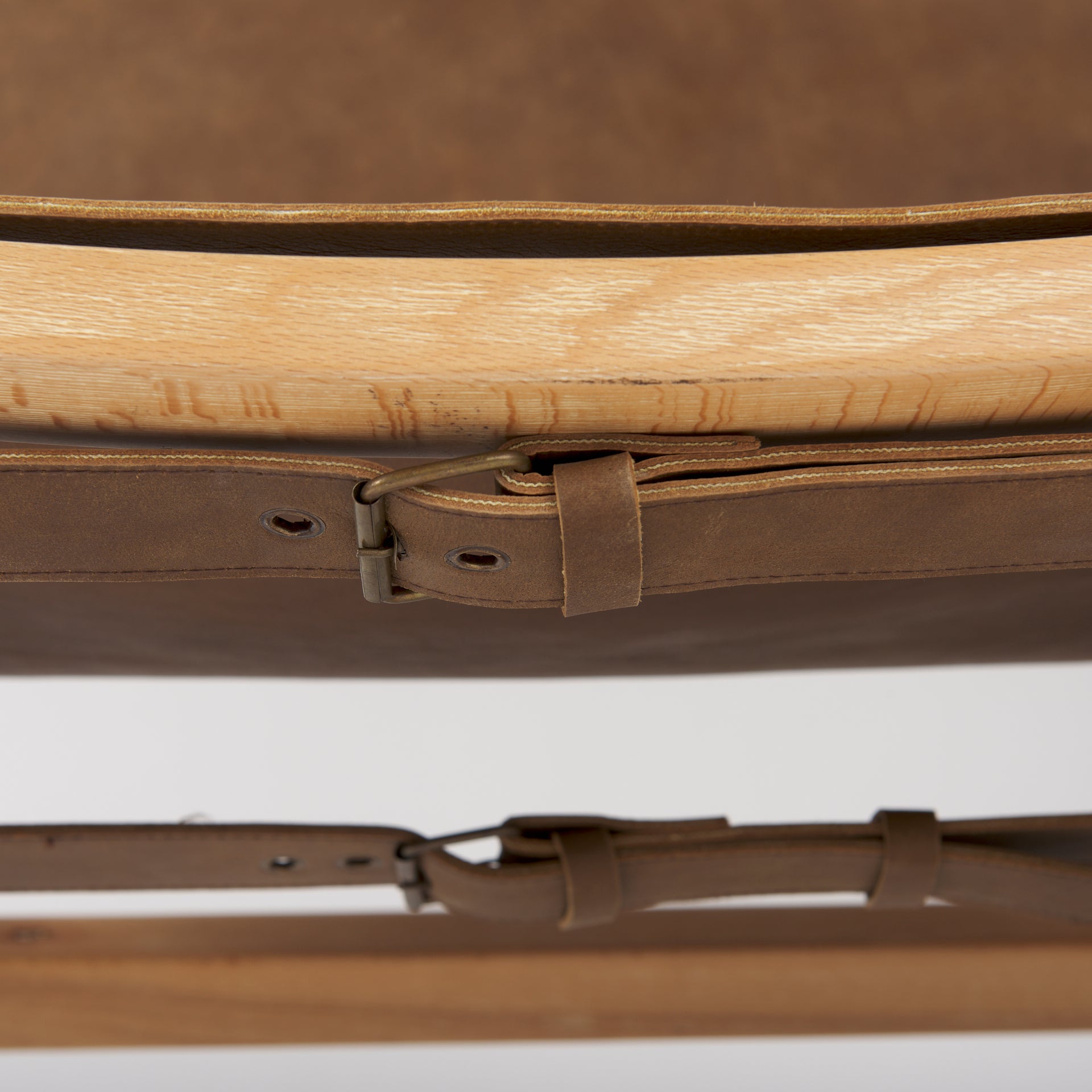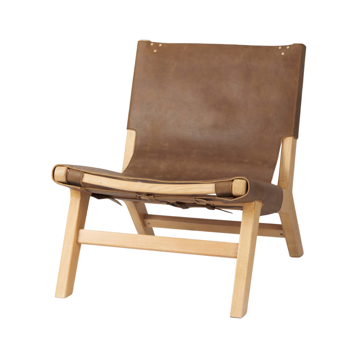 The Amelie Accent Chair is handsome in every sense of the word. Antique, brown buffalo leather stretches over a modern, low-slung frame crafted from solid Beech wood; it wraps around the seat in a strapped design that is fastened and accentuated by leather buckles and brass-finished studs. The relaxed, rustic nature of this chair is definitely a talking point.