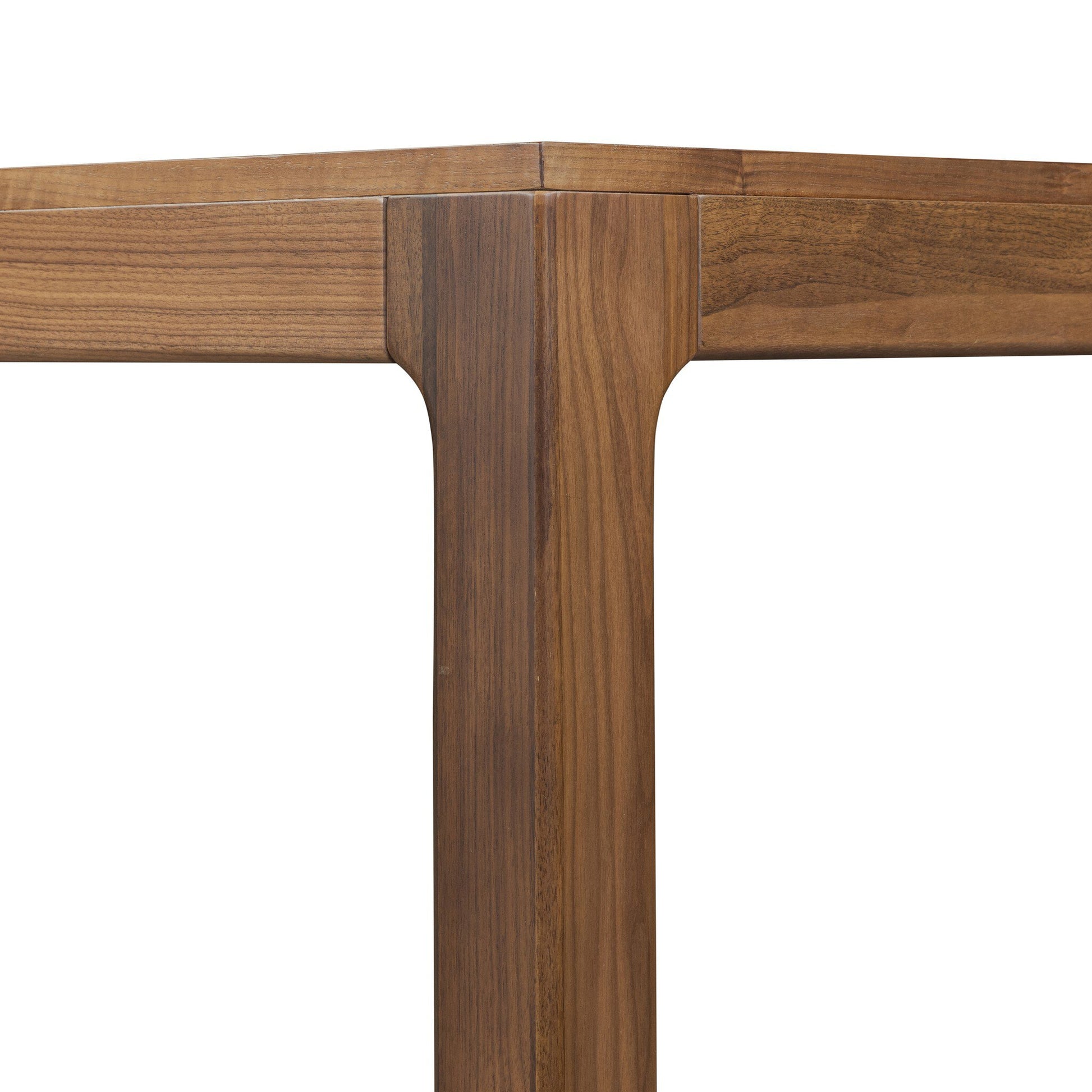Inspired by campaign-style furniture of the 1800s — packable pieces first designed for traveling military use — a simply shaped dining table of natural walnut features a subtly inset top and rounded legs.