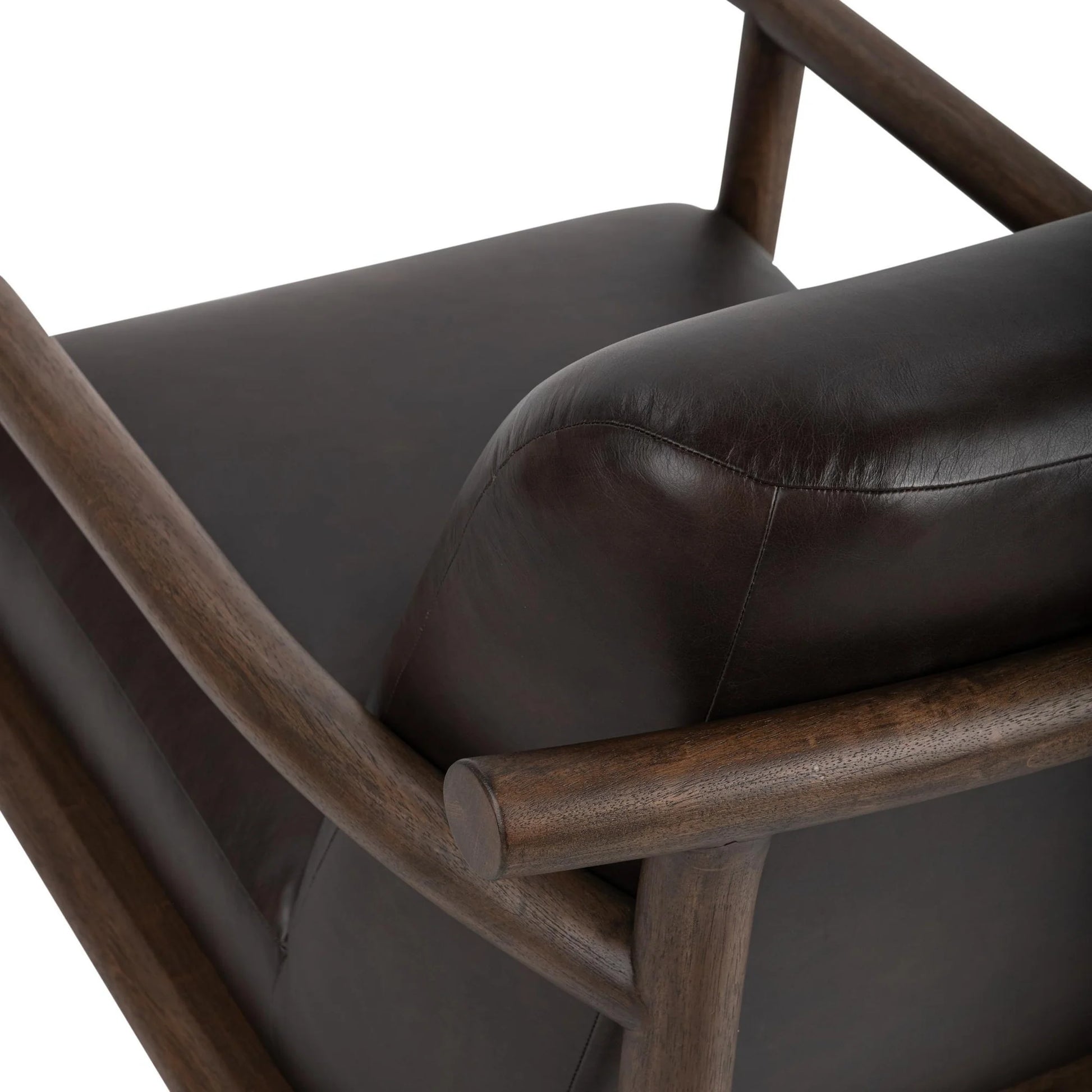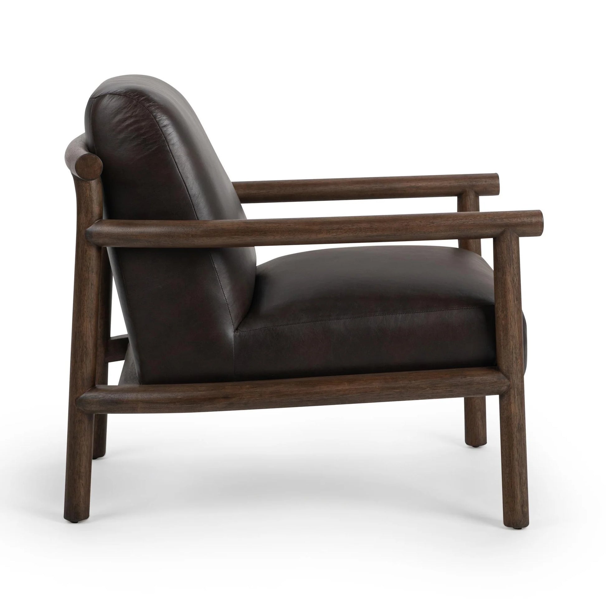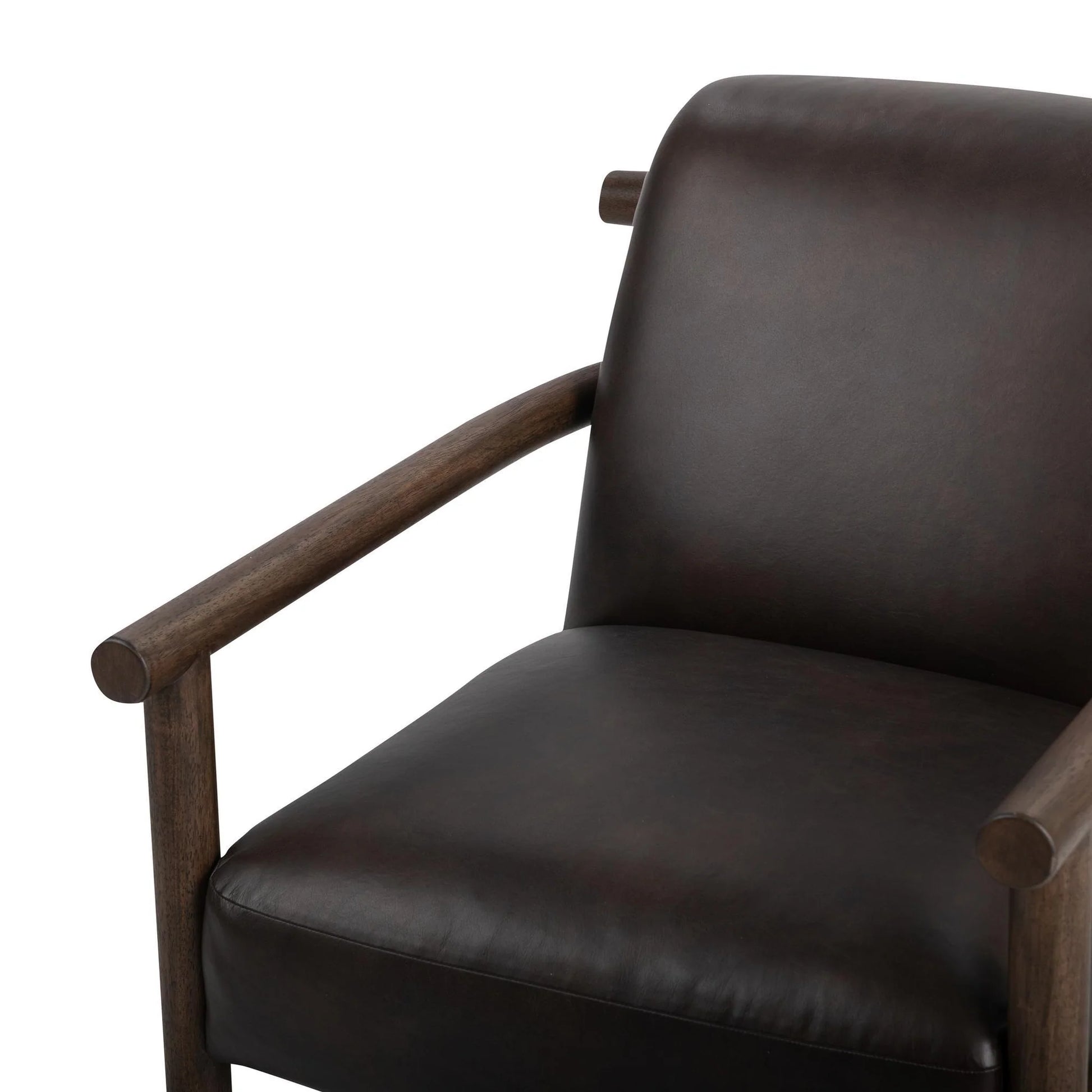 Make a bold statement with this refined accent chair crafted from rich top grain leather and solid parawood. The smooth, supple upholstery invites you to settle in, while the sculptural wood frame adds warmth and architectural character. Gently curved arms and deep cushioning provide lasting comfort for reading or relaxing. Finished in a sophisticated tone, this chair elevates living rooms, offices, and lounges with timeless style and modern appeal.