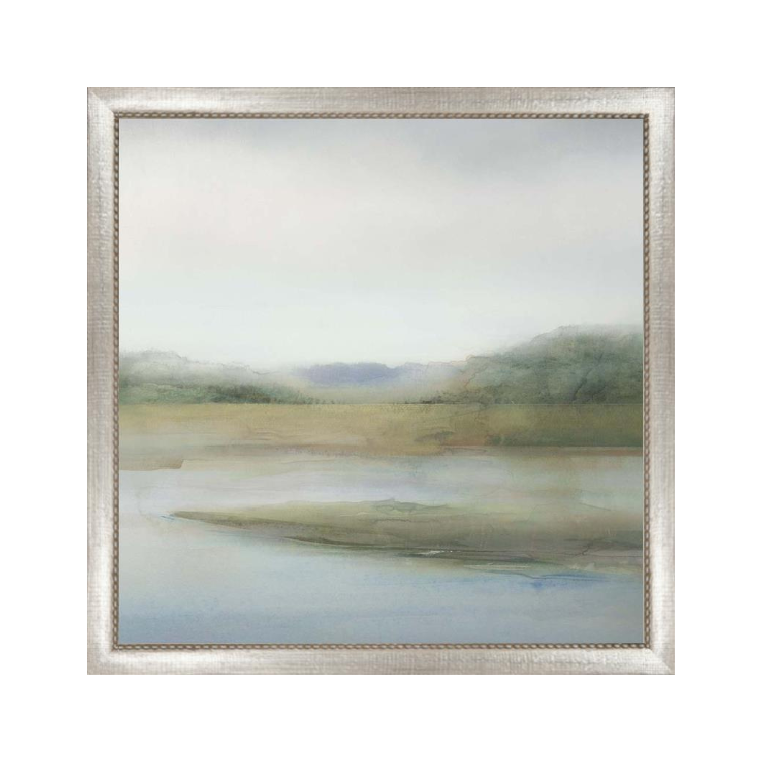 Soft and serene, the Believe II Artwork captures a peaceful landscape through gentle washes of muted blues, greens, and warm neutrals. Printed on linen, the artwork has a refined texture that enhances its airy, watercolor-like composition, creating depth without heaviness.