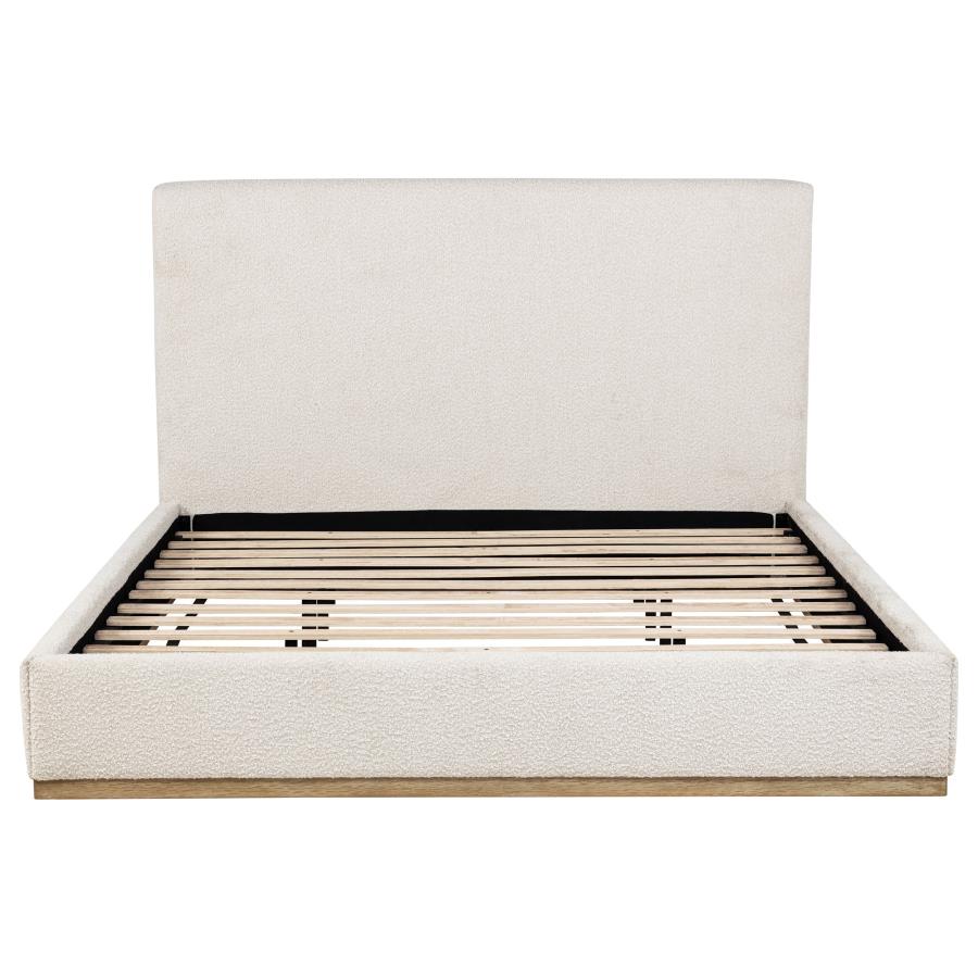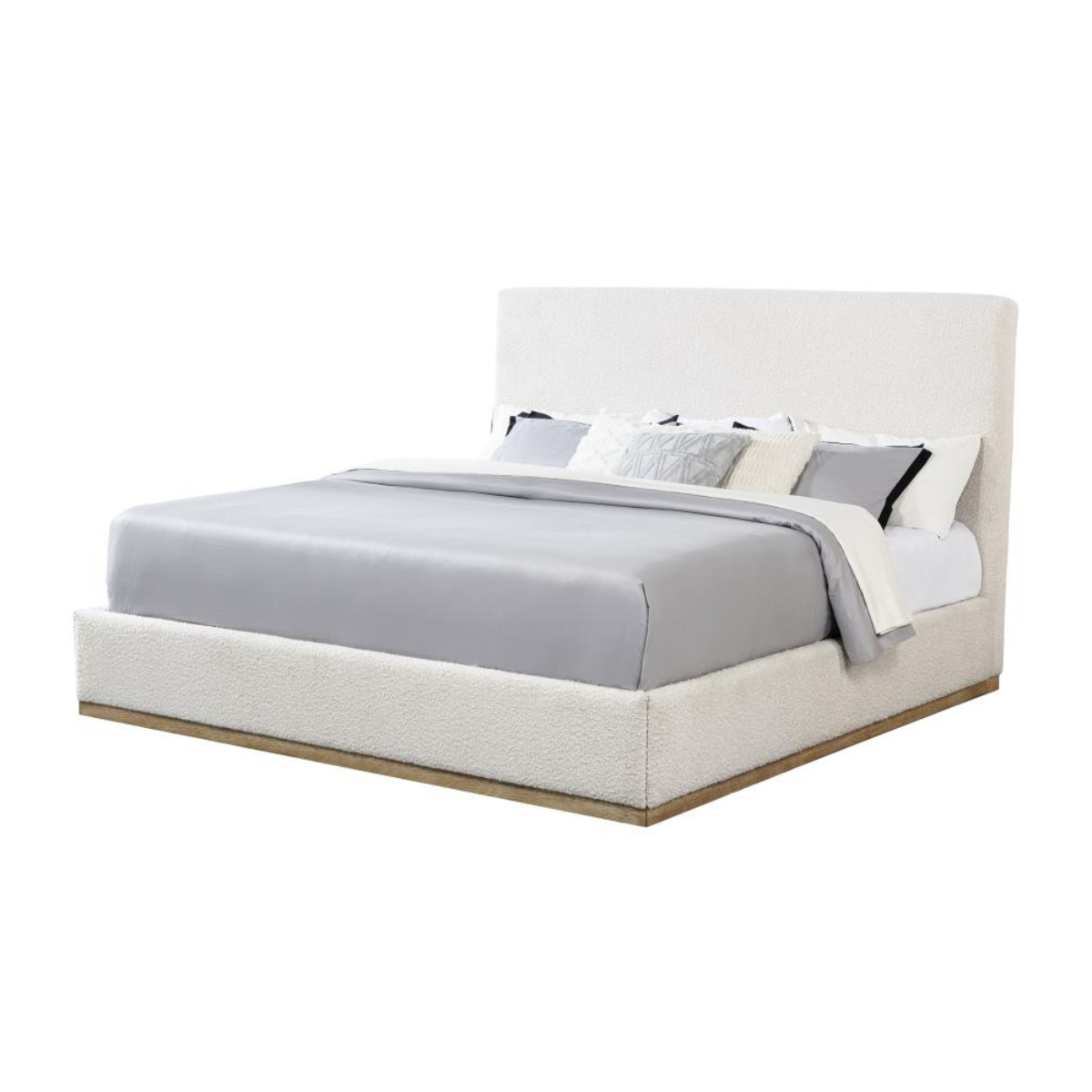 Create a soft, versatile aesthetic with an elegant presence. This bed serves as a perfect focal point for modern primary or guest bedrooms, offering a striking profile with its high headboard and clean, boxy frame. Crafted from rubberwood and wood products, the design is minimal and refined. The soft cream upholstery and padded headboard add dimension and comfort, bringing a touch of sophistication to a simple, timeless silhouette.
