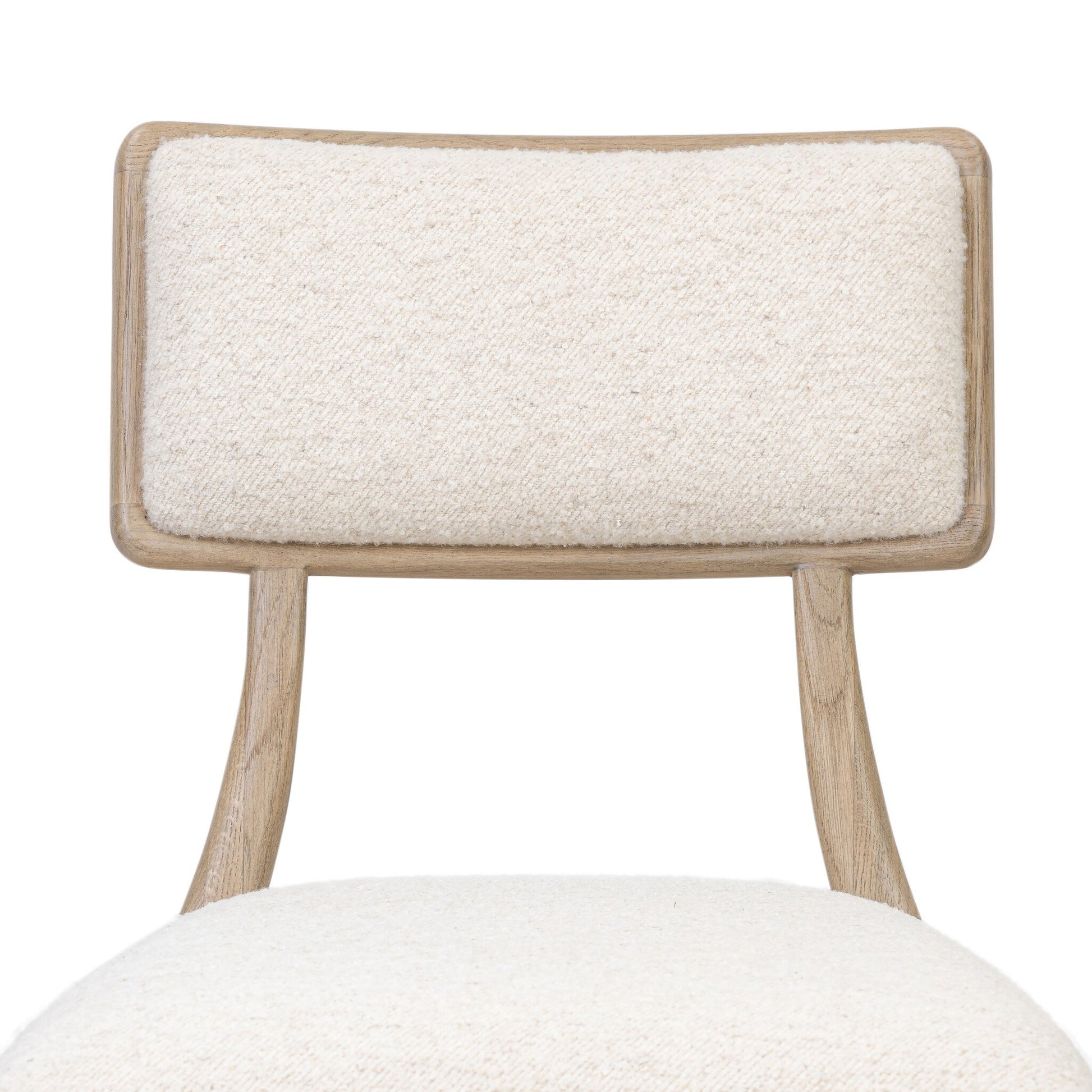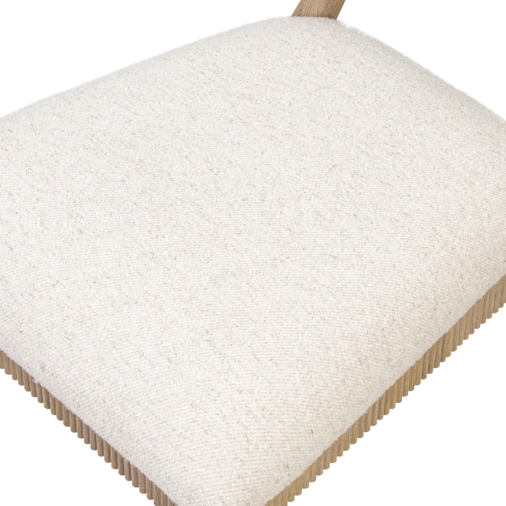 Baroque details give a classical vibe to this drifted oak chair with its tapered seat back and reeded apron. Curved back legs connect to the cylindrical-shaped cushion in oatmeal-hued upholstery. Performance fabrics are specially created to withstand spills, stains, high traffic and wear, ensuring long-term comfort and unmatched durability.