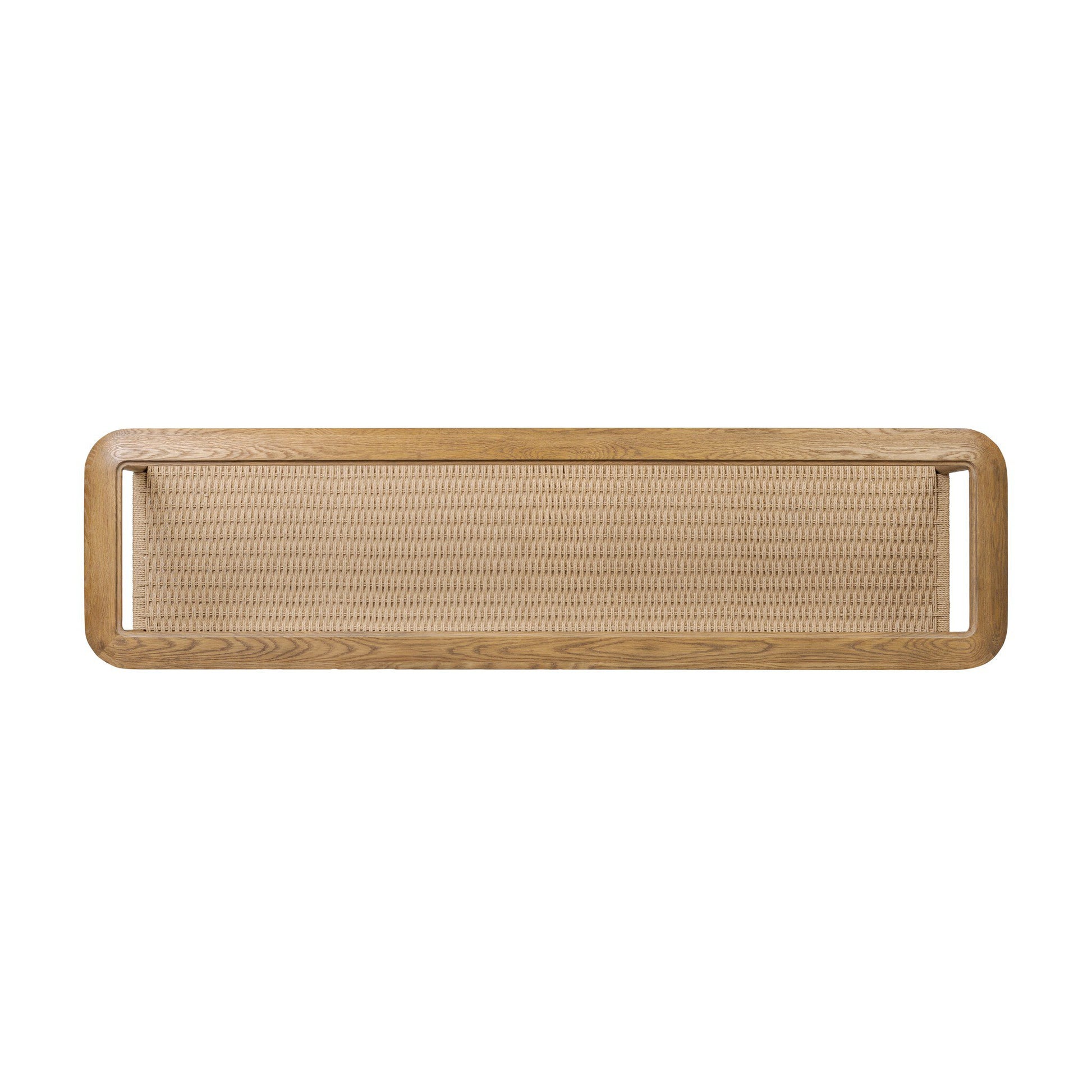 Made from brown oak, woven paper cord and tempered glass, an open-style console works into any space or style with ease, thanks to its beautifully versatile design.