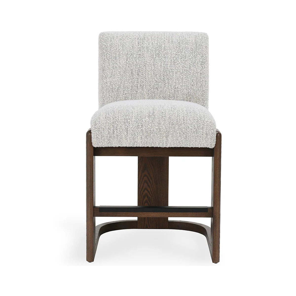 The Chelsea Counter Stool exudes contemporary sophistication with its elegant design and rich craftsmanship. Upholstered in a soft, boucle fabric, it offers both comfort and style, making it a perfect addition to your kitchen island or counter-height table. Featuring a sturdy wooden frame with a curved base and a footrest for added support, the Chelsea Counter Stool combines functionality with a refined aesthetic, elevating any space.