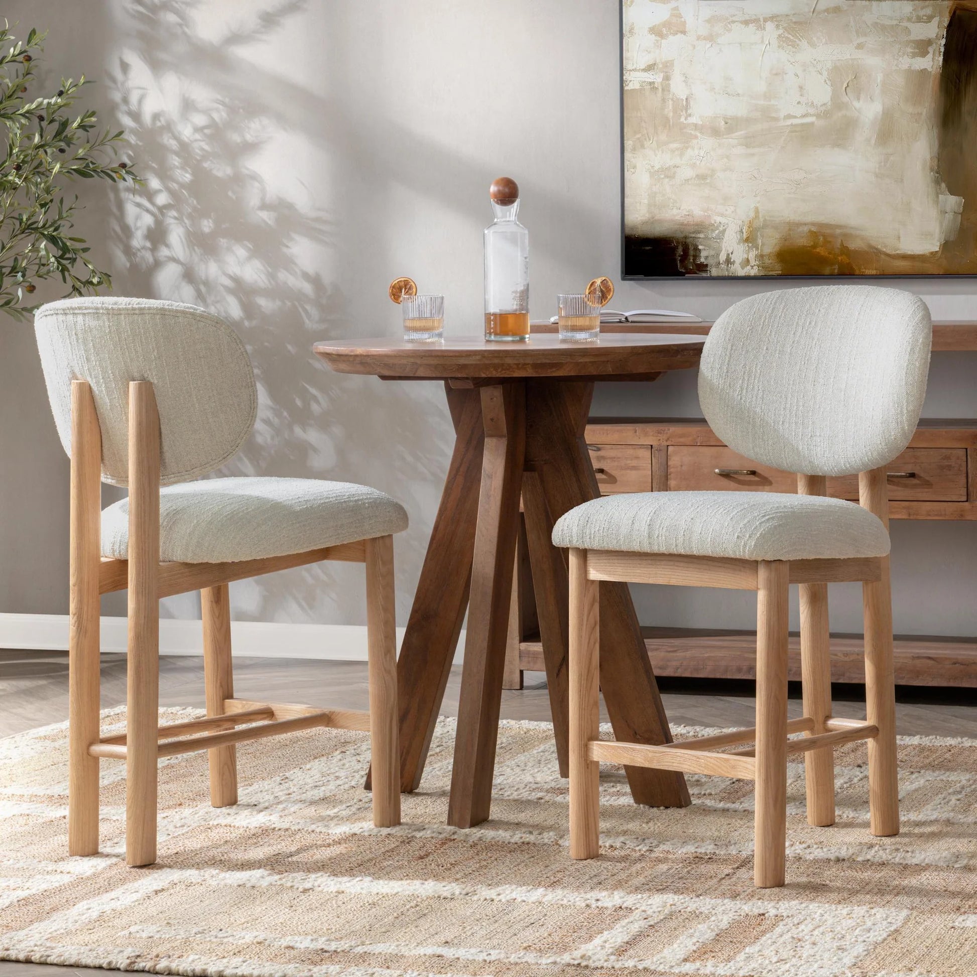 Simple yet refined, the Delancey Counter Stool brings modern elegance to your kitchen or bar. Its curved ash wood frame and floating back create an airy silhouette, while its plushly padded seat adds a layer of cozy to this minimalist profile. Designed for both style and comfort, it invites you to linger a little longer.