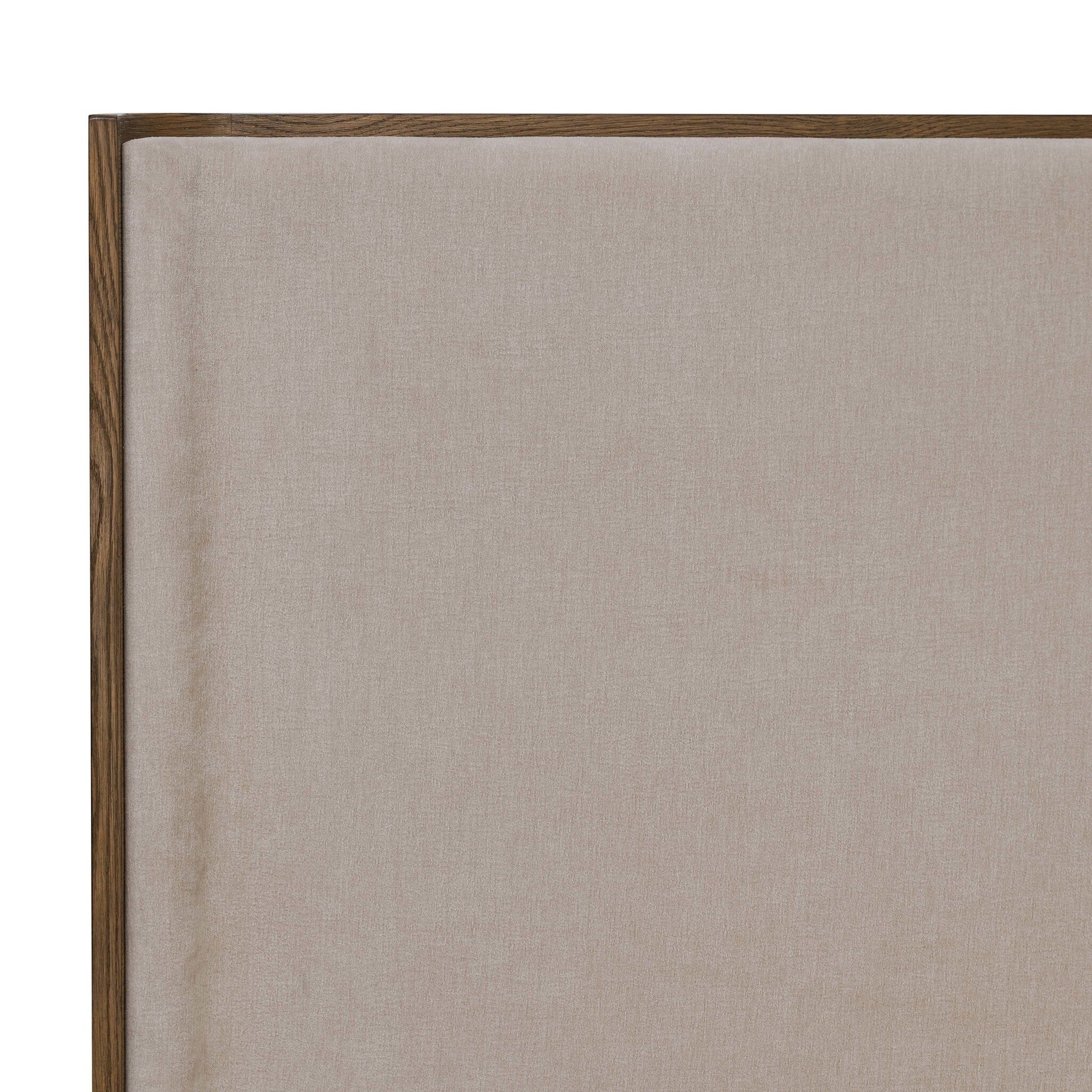 An updated take on the timeless shelter bed is crafted from solid oak with natural grain and a rustic finish. Nested upholstered brings an inviting layered look to an angled shelter headboard, while rounded corners soften clean lines.
