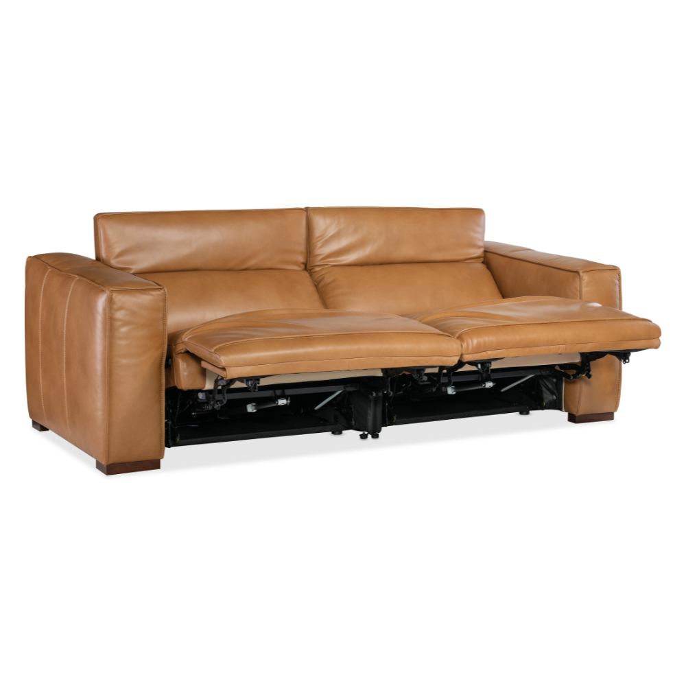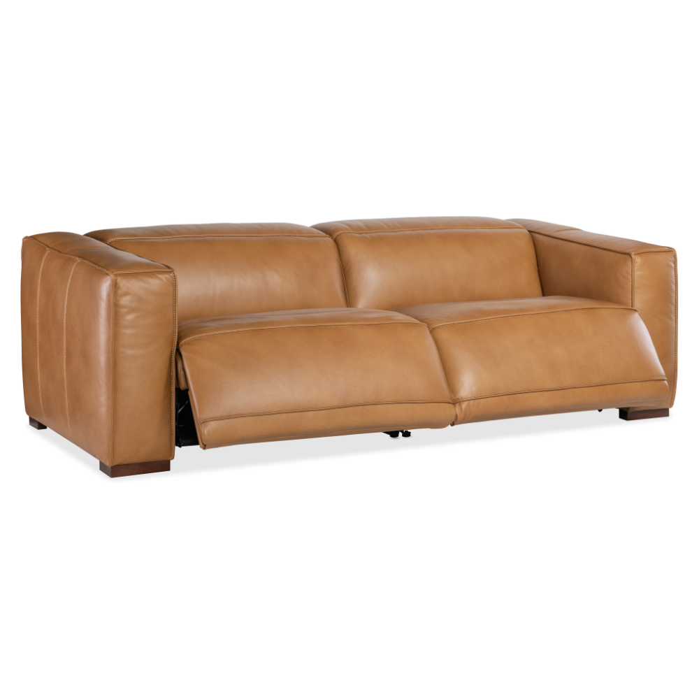 Crafted with power recline and power headrest features, this sofa offers ultimate relaxation at your fingertips. Its wide track arms and wood block feet exude a modern charm, while the sleek leather material adds timeless elegance to your living space.