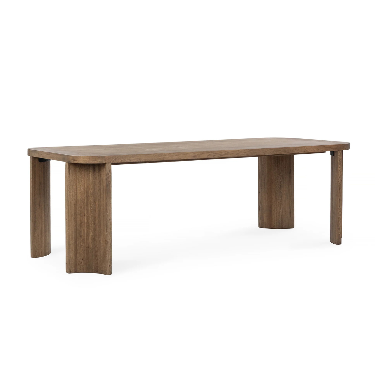 Embrace clean, modern design with this dining table. A streamlined profile with softly rounded edges and sculptural legs brings effortless elegance to any setting. The natural oak finish highlights organic grain while maintaining a light, airy presence. Perfect for minimalist dining rooms, contemporary kitchens, or open-plan spaces, this oak veneer dining table offers timeless style and functional beauty designed for both everyday living and casual entertaining.