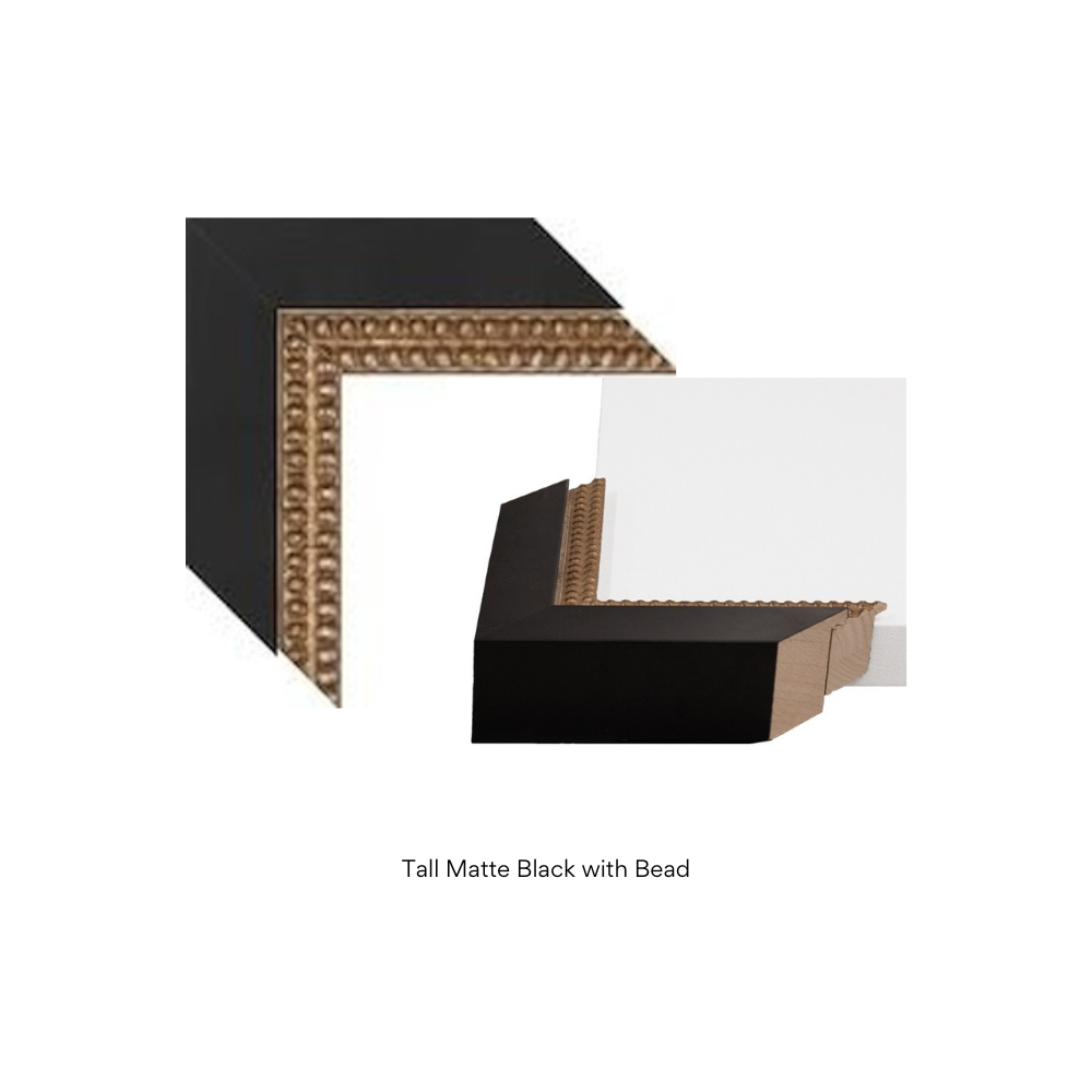 Finished in a matte black frame with a silver double bead detail, this artwork balances contrast and elegance, making it a striking yet versatile addition to a curated interior.