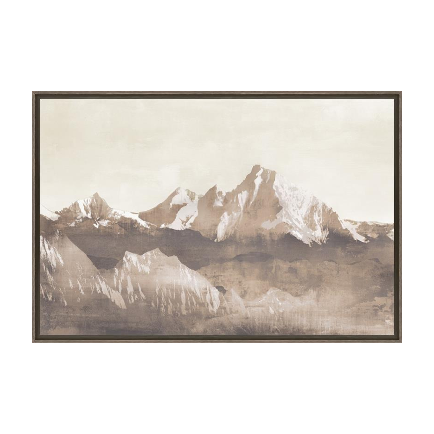 Quiet and expansive, the Faded Heights of the Rocky Mountains Artwork captures the softened grandeur of mountain peaks through a warm, neutral palette. Subtle layers of taupe, stone, and ivory create depth while maintaining a calm, atmospheric presence. Printed on natural canvas with an ivory finish, the artwork highlights organic texture and lends a timeless, painterly quality.