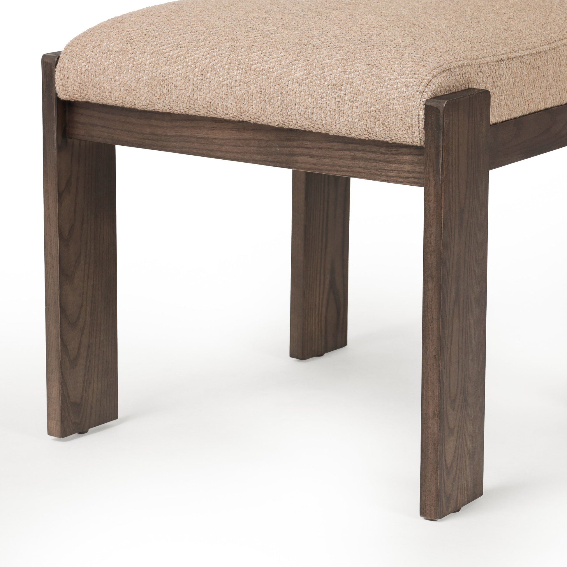 A wide stance makes this comfort-driven dining chair an instant classic. Outset legs of solid ash — standard rectangular front legs and angled back ones — frame a linen/cotton-blend seat and back, adding an architectural touch.