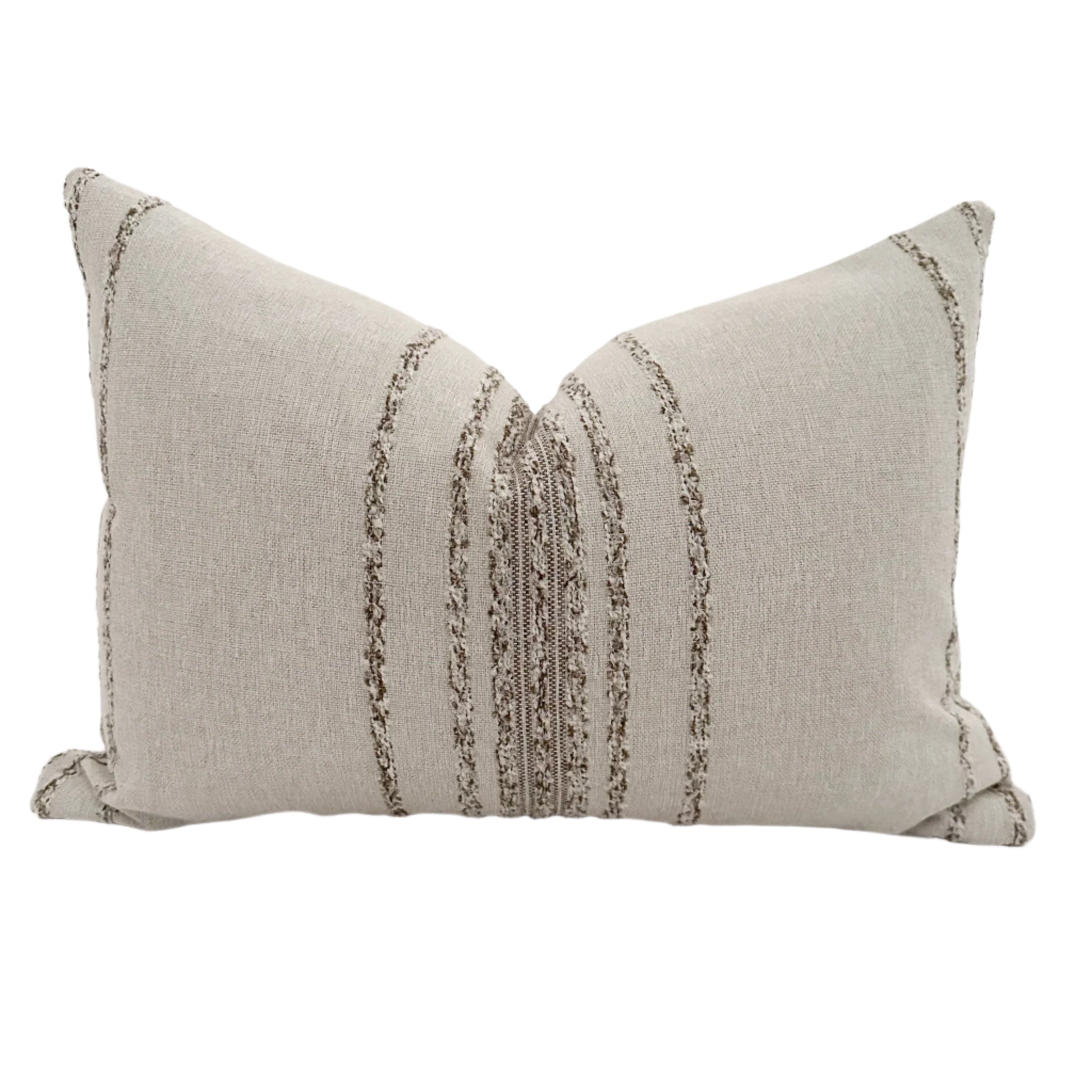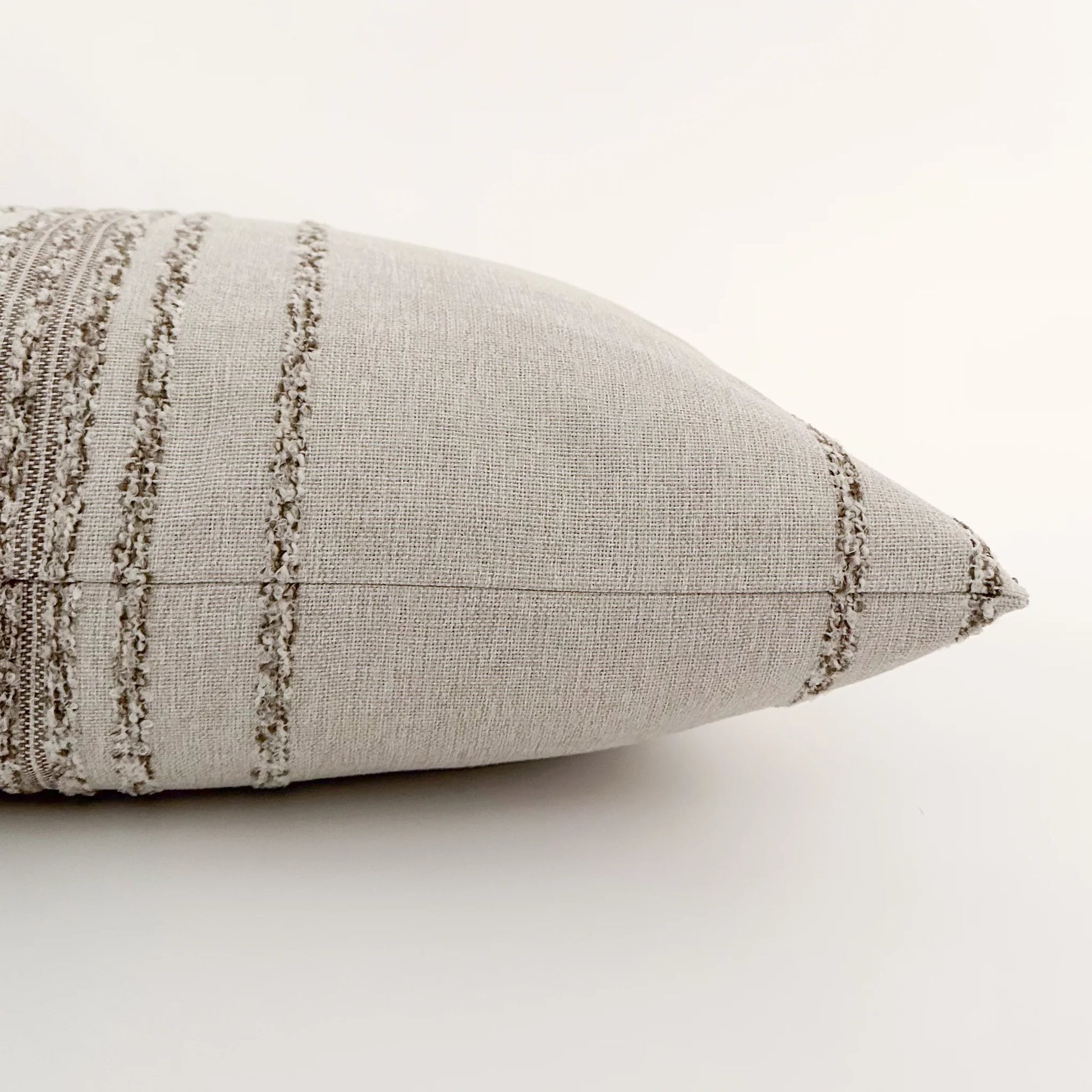 Bring organic texture and effortless warmth to your space with the Hay Sack Linen Pillow Cover. Crafted in the USA, this pillow features a beautiful blend of warm and cool woven fibers in soft, earthy shades of brown and white.