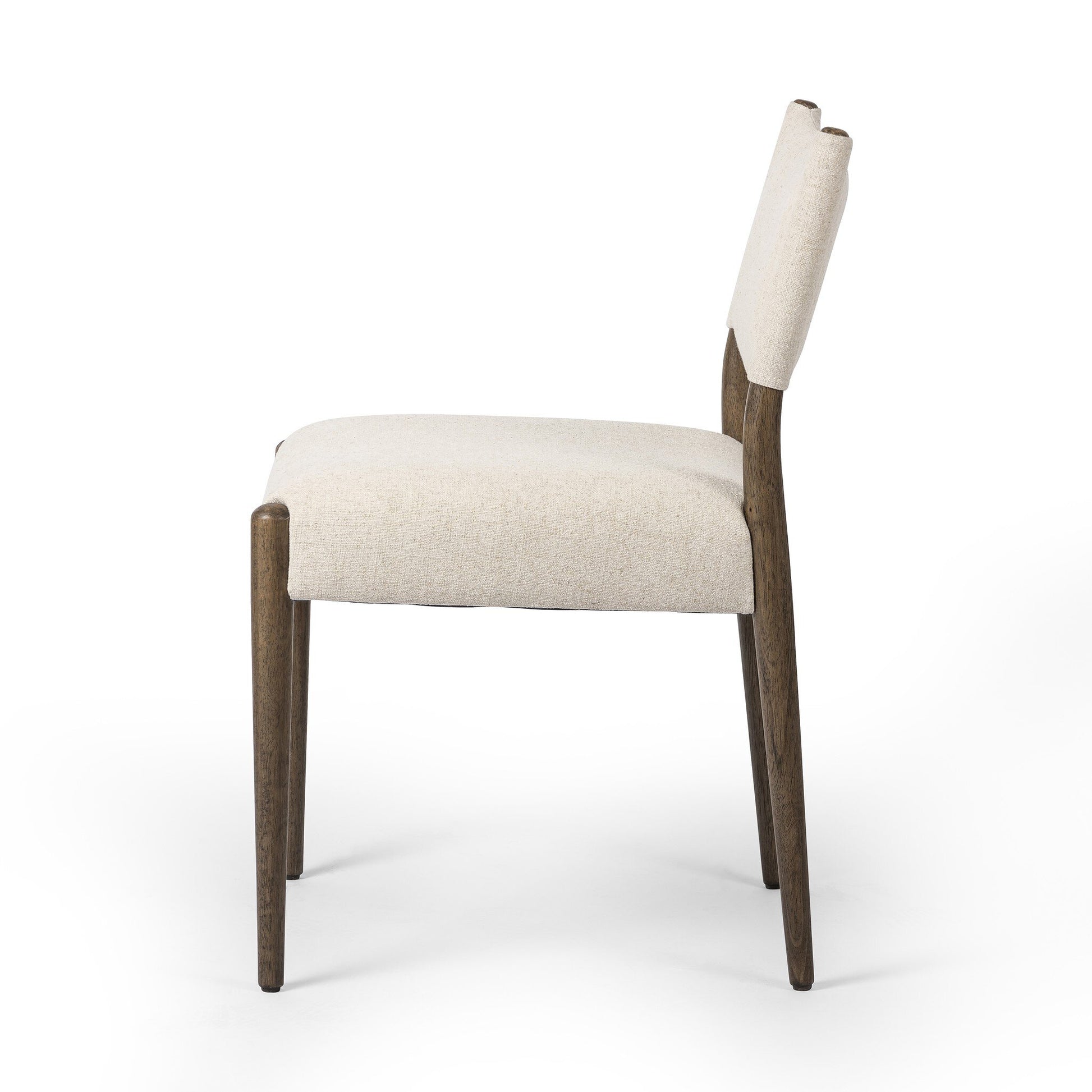 A midcentury-inspired piece brought to modern times. A supportive, sling-style back and seat cushion are upholstered in a texture-rich fabric.
