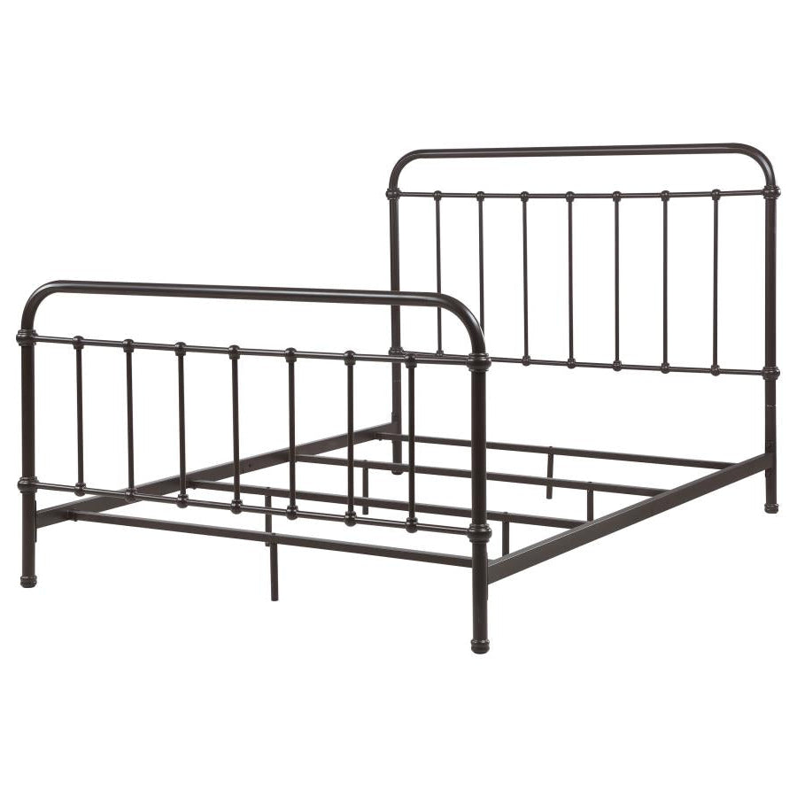 Bring vintage-inspired charm to your bedroom with this farmhouse-style metal bed. Designed with a sturdy heavy-gauge metal frame, it features a dark bronze powder-coated finish that enhances its timeless appeal. The headboard and footboard showcase a vertical spindle design with continuous weld construction for added strength and durability. Built for stability and long-lasting use, this bed adds rustic elegance to both modern and classic interiors.