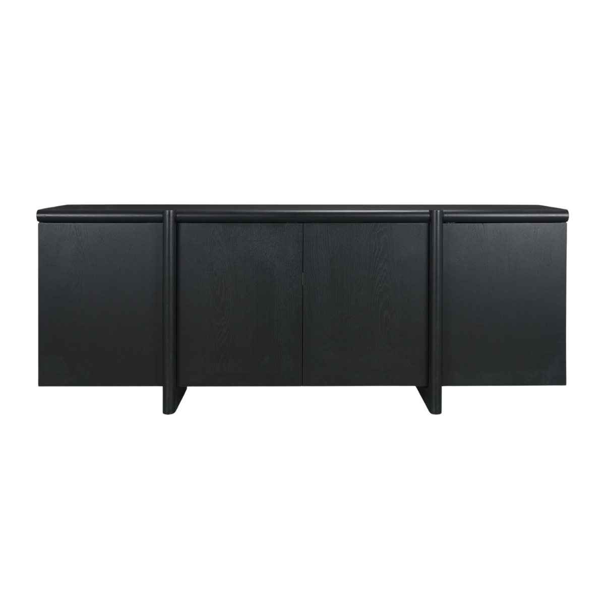 The Linden is a four-door closed sideboard crafted from solid sandblasted black oak with matching oak veneer, offering a rich texture and tonal depth. Its clean lines and flush detailing create a seamless, modern silhouette.