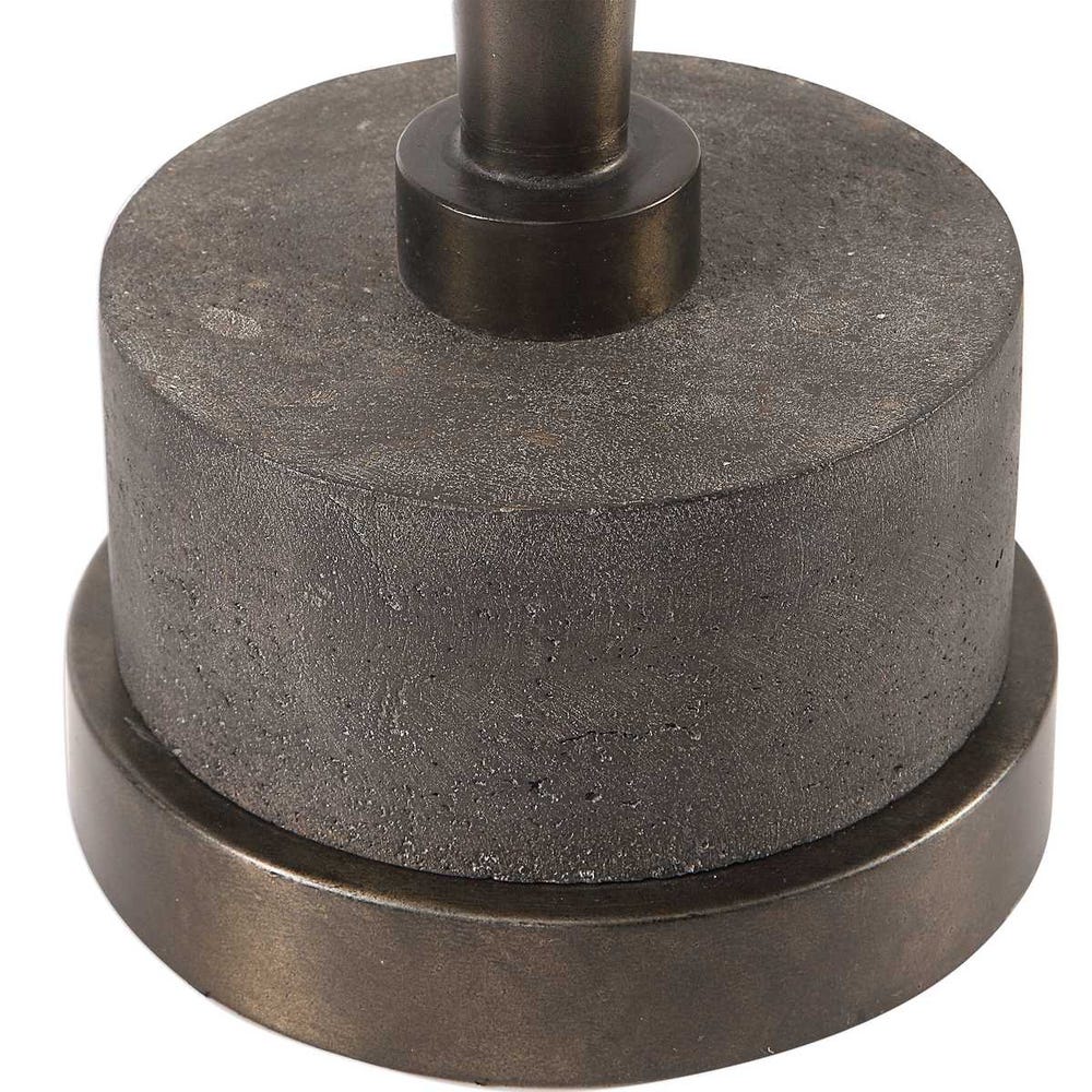 A perfect landing spot for a drink or a book, this mixed material accent elevates the industrial feel of natural gray concrete with modern accents of oxidized bronze steel.