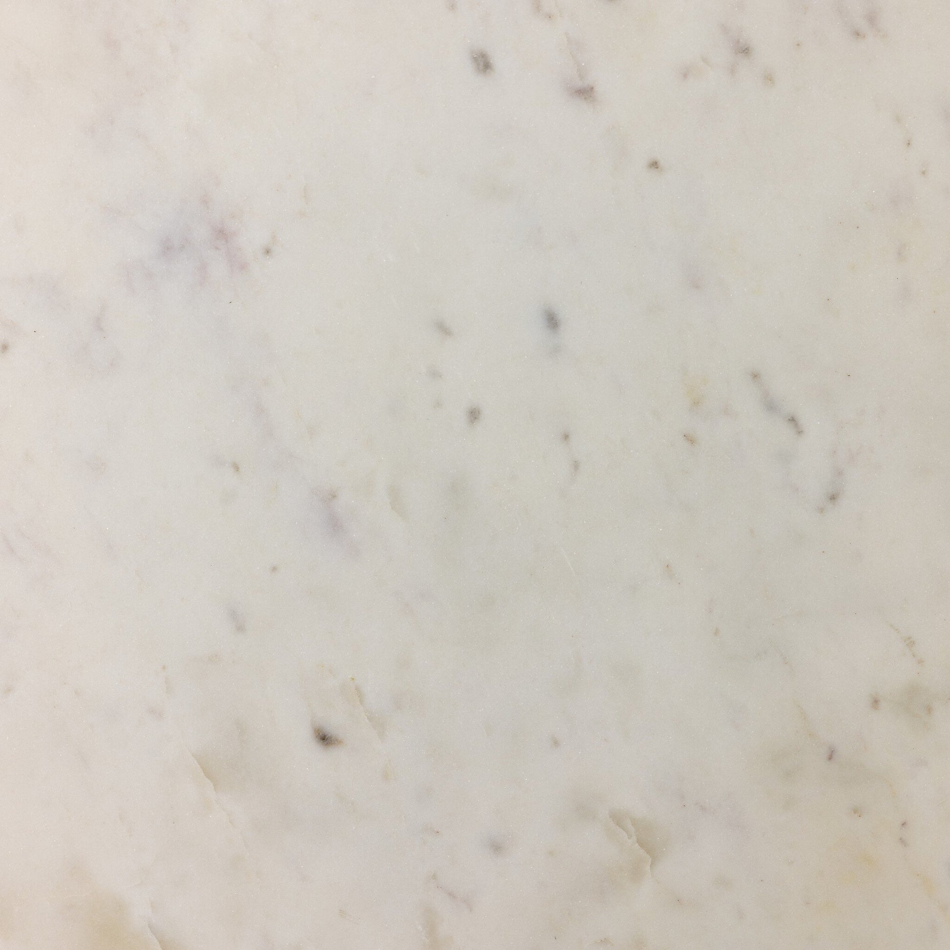 Shape up. Polished white marble forms a stack-style end table of semicircles and squares, for a Deco-inspired look with subtle Eighties vibes.