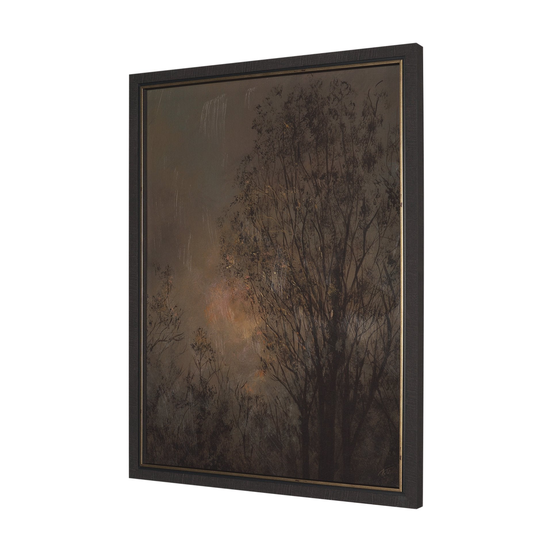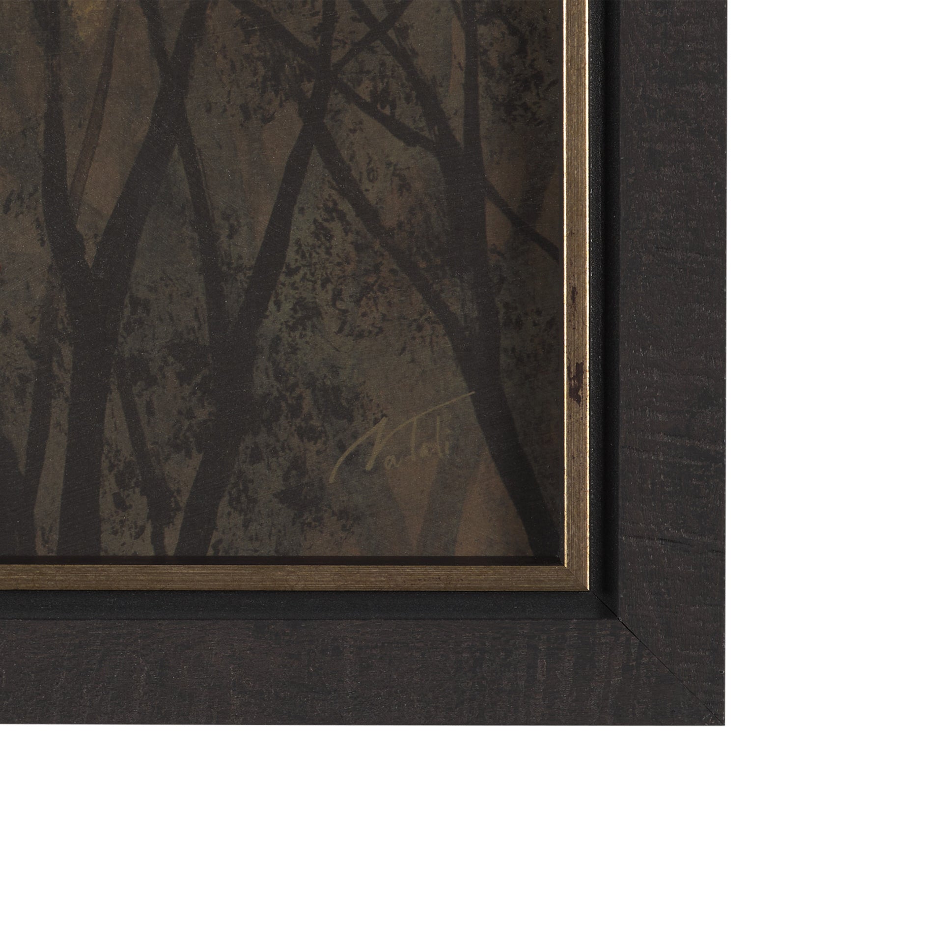 Night Sky III is a mixed media artwork that captures the quiet beauty of nature through intertwining branches set against rich, earthy tones. A muted palette of browns and greys evokes an autumnal calm, while hand-embellished details add layered texture and depth. Framed to enhance its presence, the piece invites a sense of stillness and contemplation.