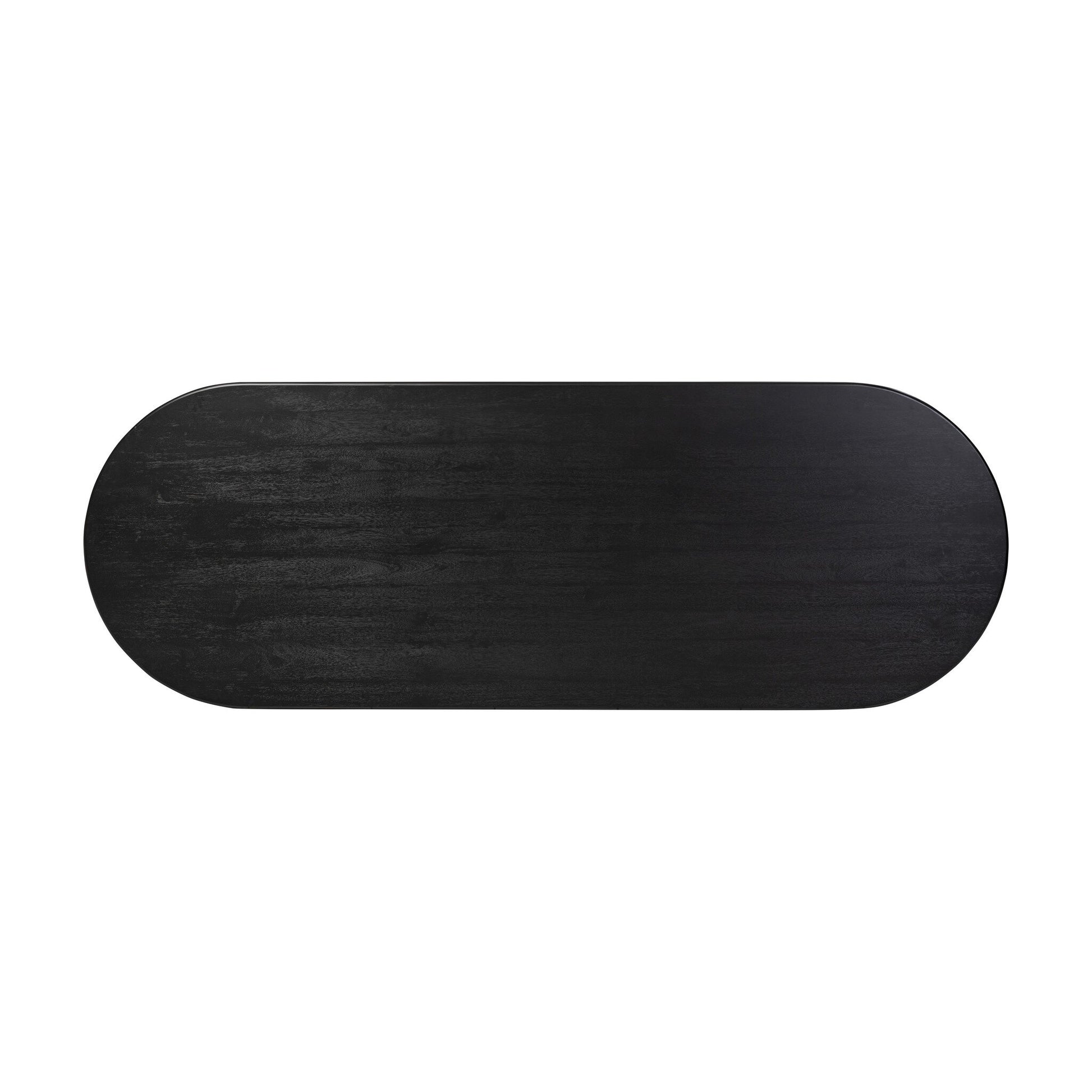 A study in shape. Solid acacia forms crescent-shaped legs and a long oval tabletop, bringing grand, organic-infused presence to the dining room. Available in 4 colors and 2 sizes.