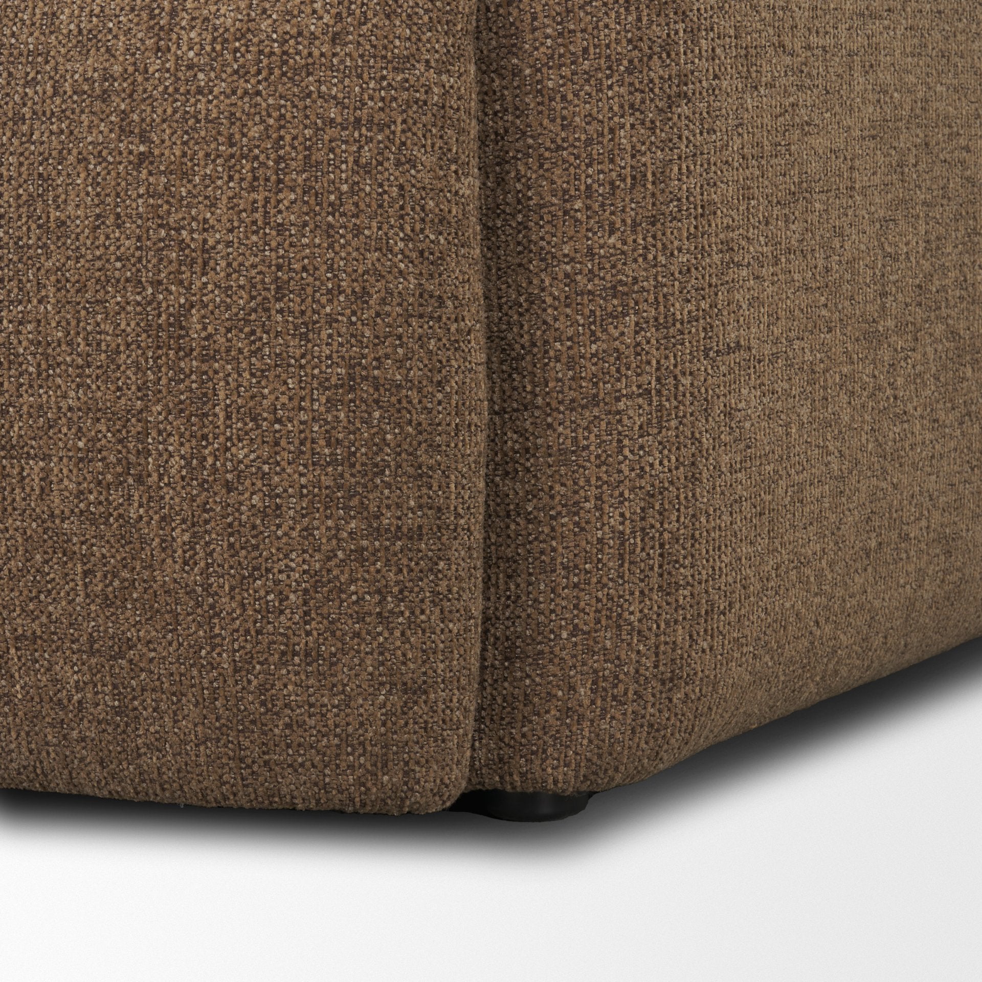 The Saga Upholstered Chair is enveloped in soft, thick textured mocha brown fabric that lends an heirloom appeal, featuring soft curves and an inviting, relaxed silhouette.