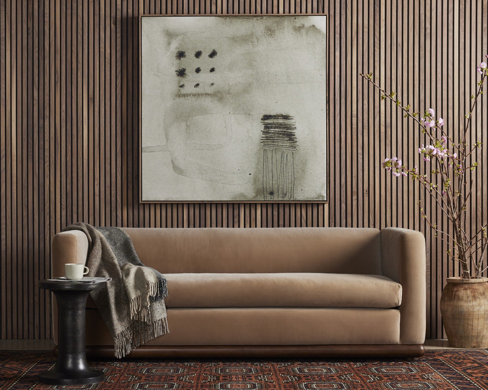 Raised between Ethiopia, Malawi, Togo, and South Africa, the now-Austinite's worldly upbringing can be sensed in her culture-rich works. Rustic walnut floater frame for a gallery-style look. Handmade in Austin, Texas.