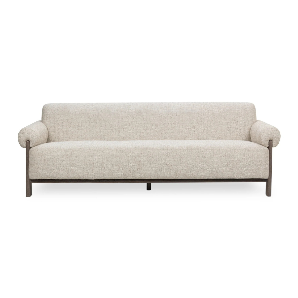 Bring modern elegance to your space with this upholstered fabric sofa, made from soft polyester, solid oak wood, and oak veneer accents. The sleek, sculptural frame features rounded arms and a tailored silhouette, offering both comfort and contemporary charm. Perfect for living room seating, apartment sofas, and modern home decor, this stylish piece combines quality craftsmanship with durable materials for long-lasting comfort and visual appeal.