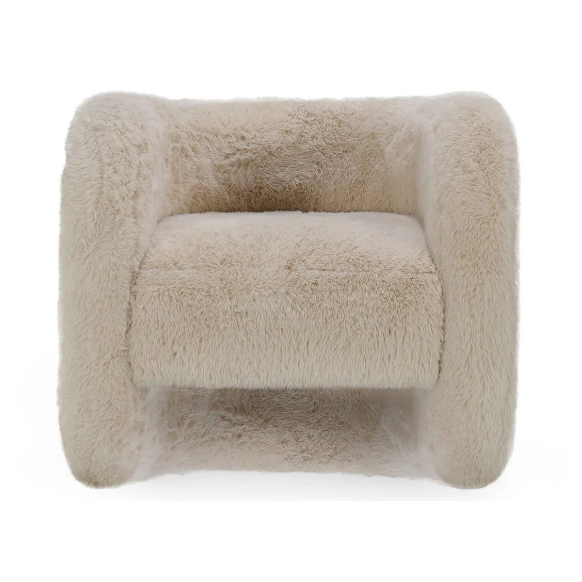 The Teddy Plush Accent Chair features soft faux fur upholstery and Pirelli webbing, offering both comfort and durability. Its modern sculptural design and unique silhouette bring a bold and stylish touch to any space, while the sleek, contemporary aesthetic elevates the overall look of your living area or lounge.