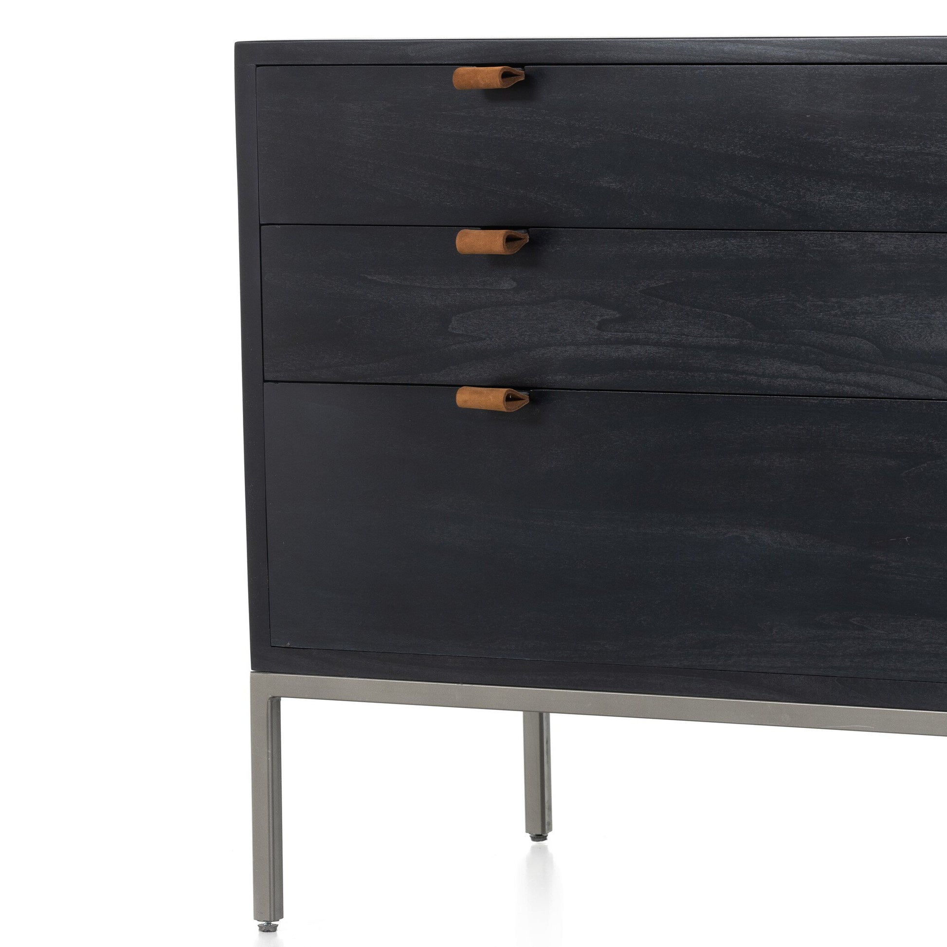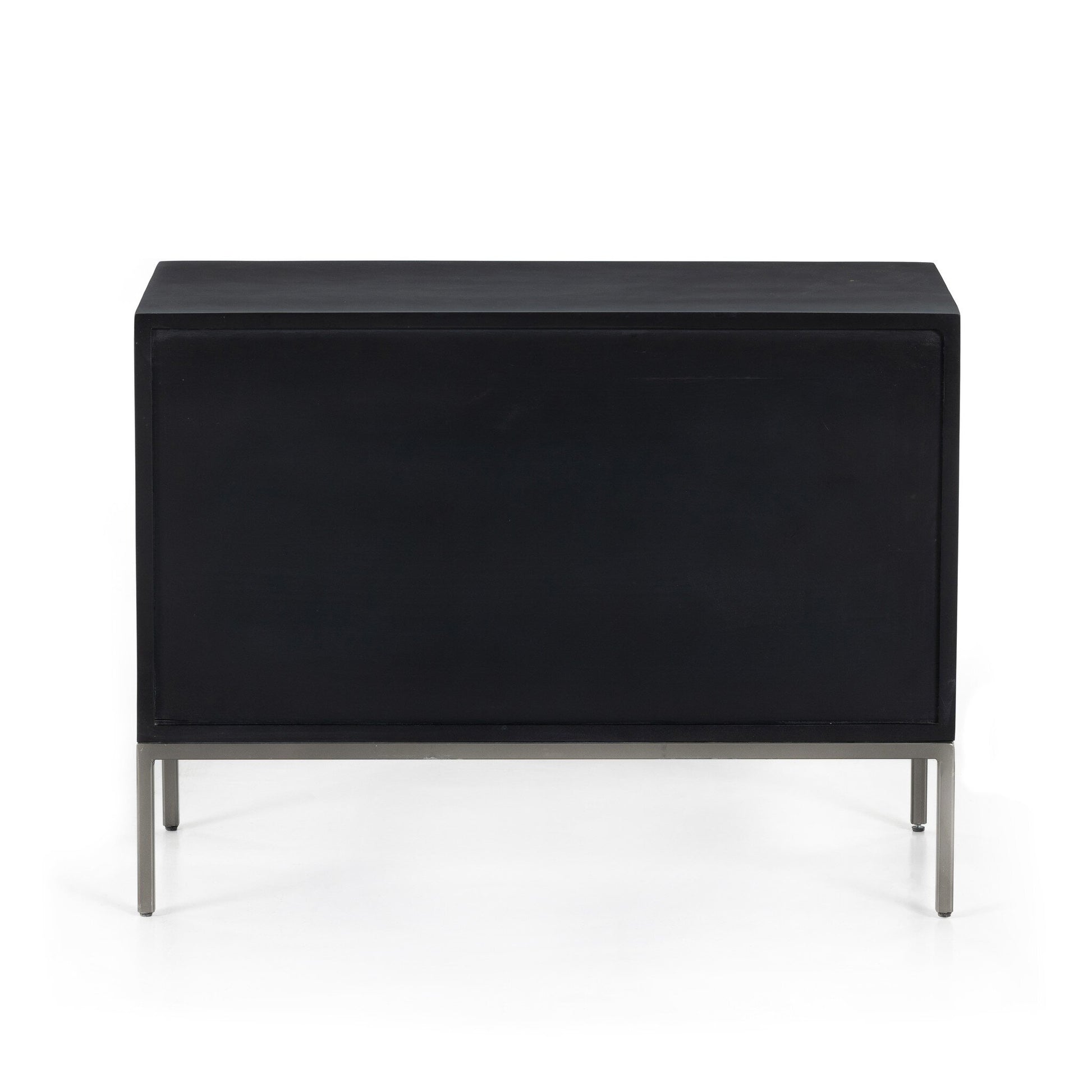 Simple style, inspired by midcentury décor. Made from auburn or black-finished poplar, a roomy three-drawer nightstand brings extra storage space to the bedside.