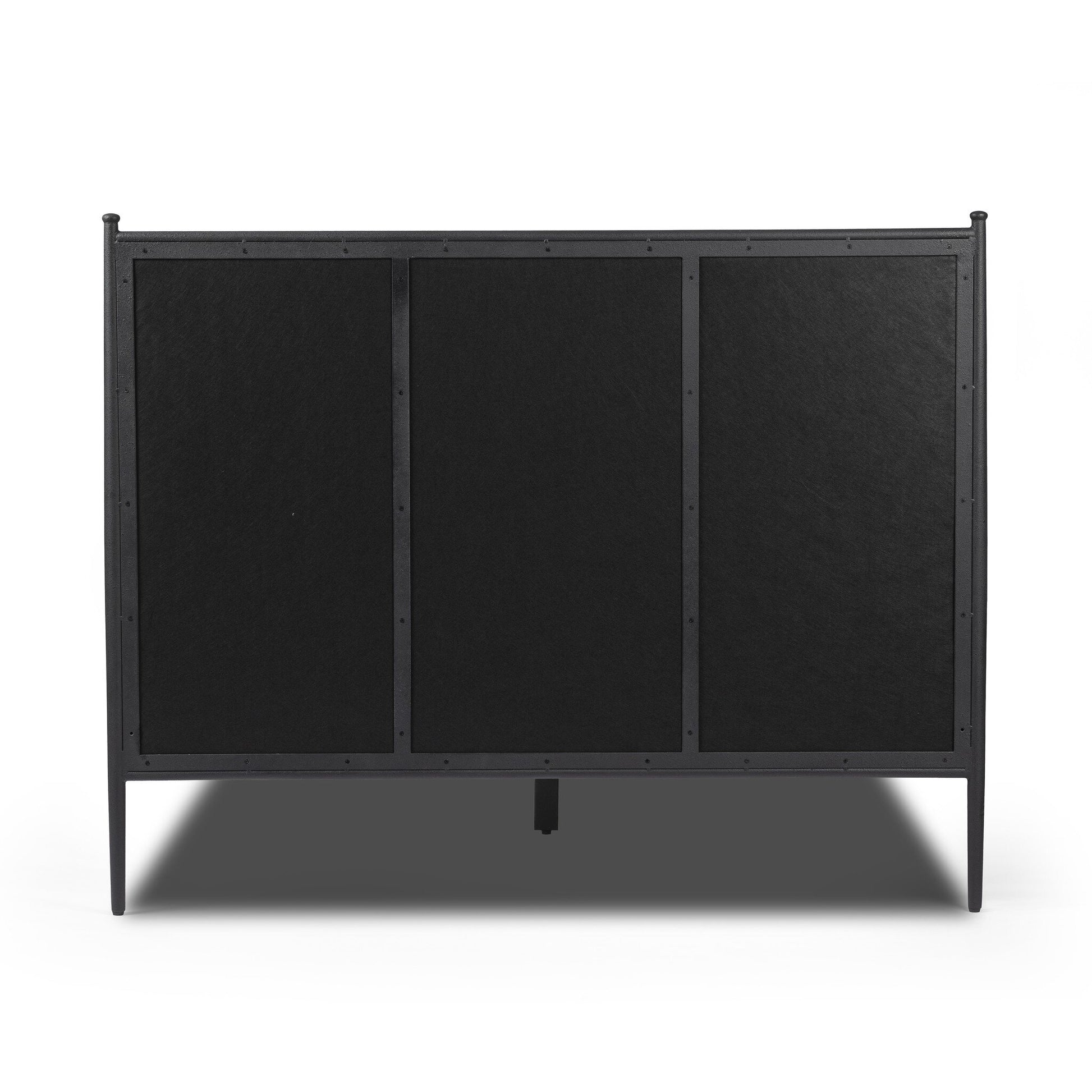 Crafted from textured black iron, this bed frame features soft tapered legs, each topped with a rounded ball detail. A comfortable headboard is upholstered in classic cream to move between styles with ease.